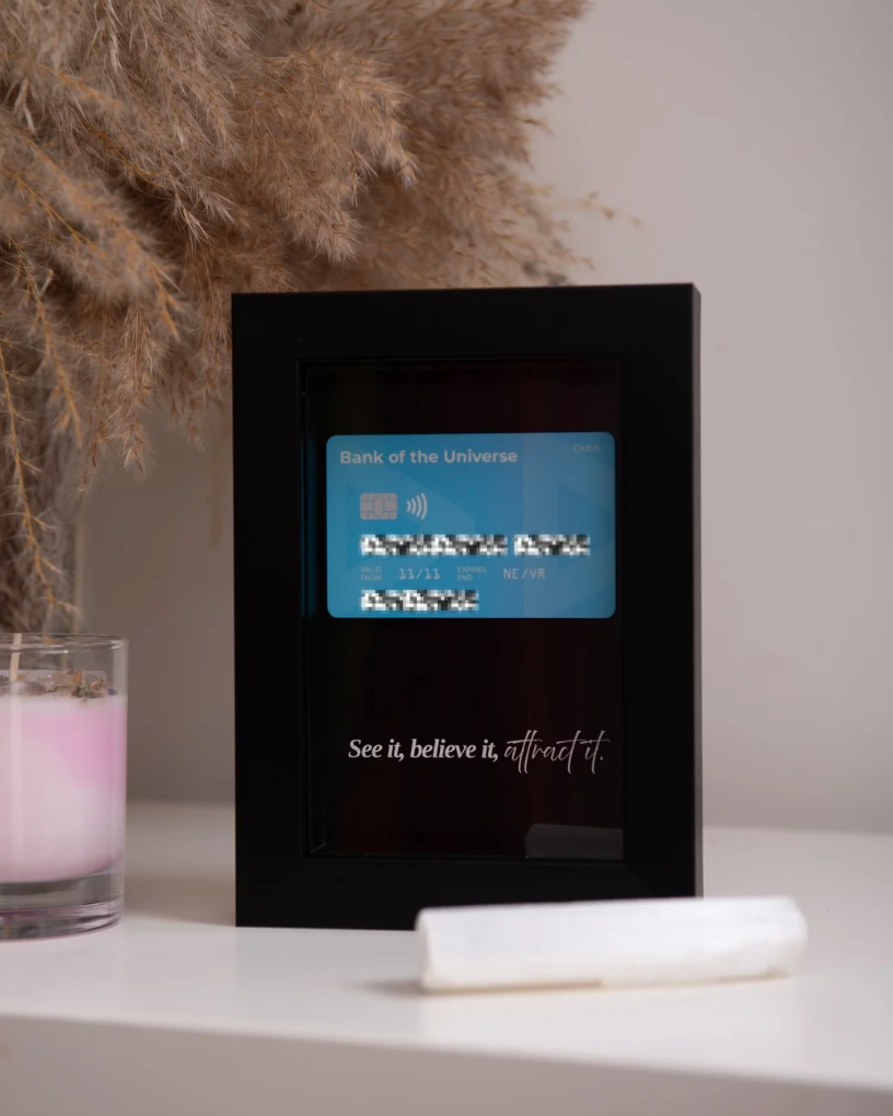 Unlock the energy of limitless wealth with your own Personalised Manifestation Bank Card.